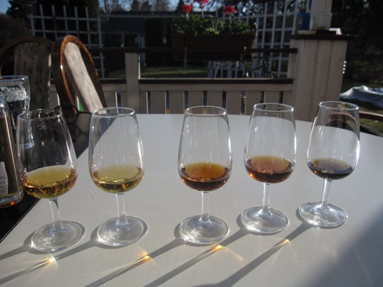 Eilen illan hämärtyessä lasiini päätyi ja sieltä viinahissillä maksan poltettavaksi seuraavanlainen setti jaloja juomia...
