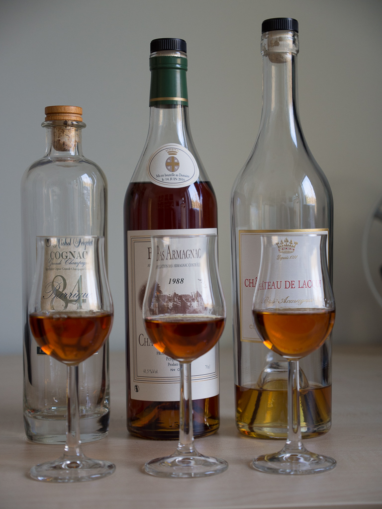 Eli kaksi vuosikerta armanjakkia ja yksi vuosikerta tilakonjakki sparraamaan.