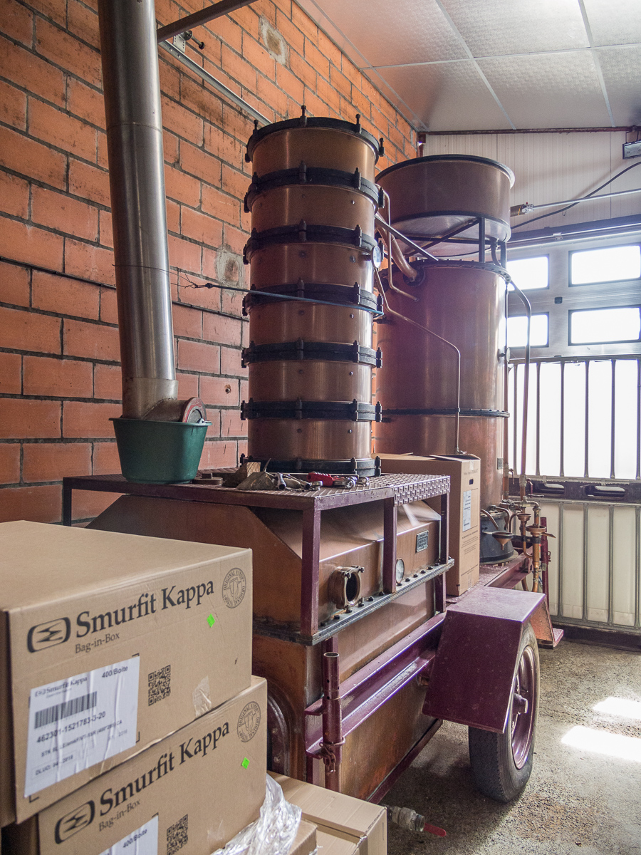Täytyy tunnustaa, että nolostuttavan huonosti otin ylös käytyjä paikkoja ja hintoja - en tähän hätään edes muista, mistä tuo tislauspannu oli. Ehkä anteliaalla tarjoilulla oli jotain tekemistä sen kanssa.. ;D